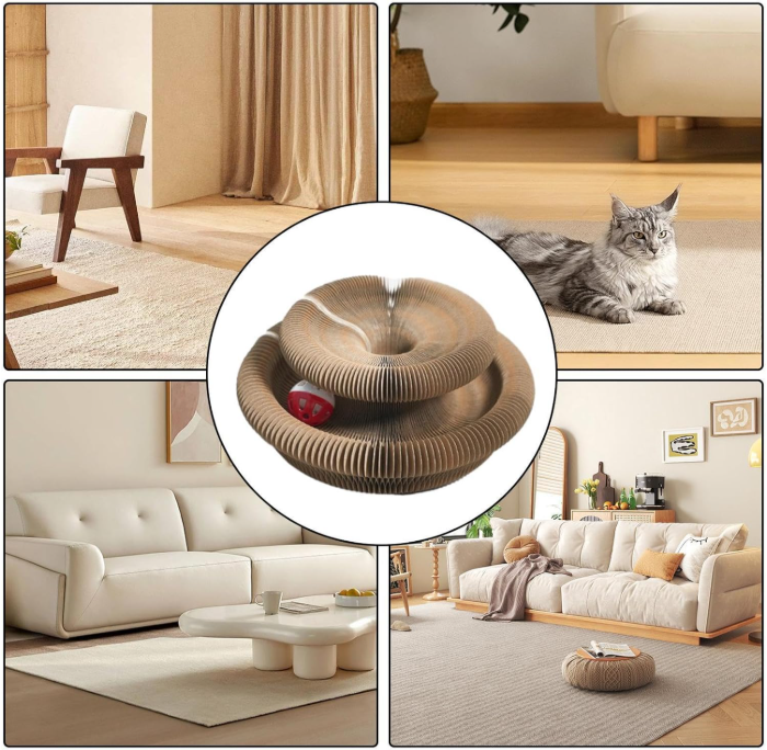 - Fonction : griffoir + jouet interactif + stimulation naturelle