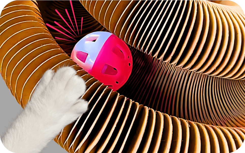 95% des chats l’adoptent dès les premiers jours grâce à son principe naturel de chasse + cachette.